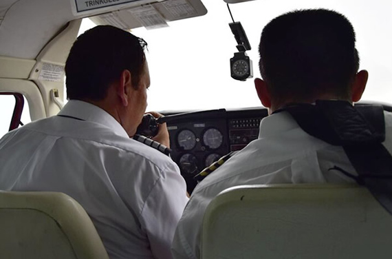 Capacitación de vuelo para estudiantes pilotos con instructores experimentados.